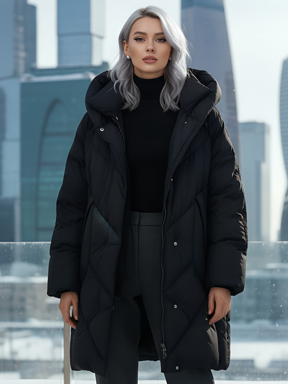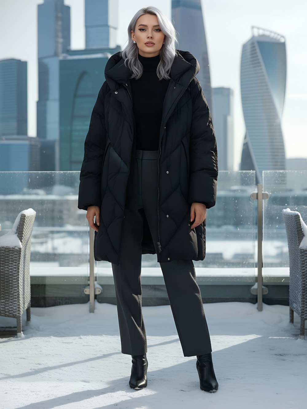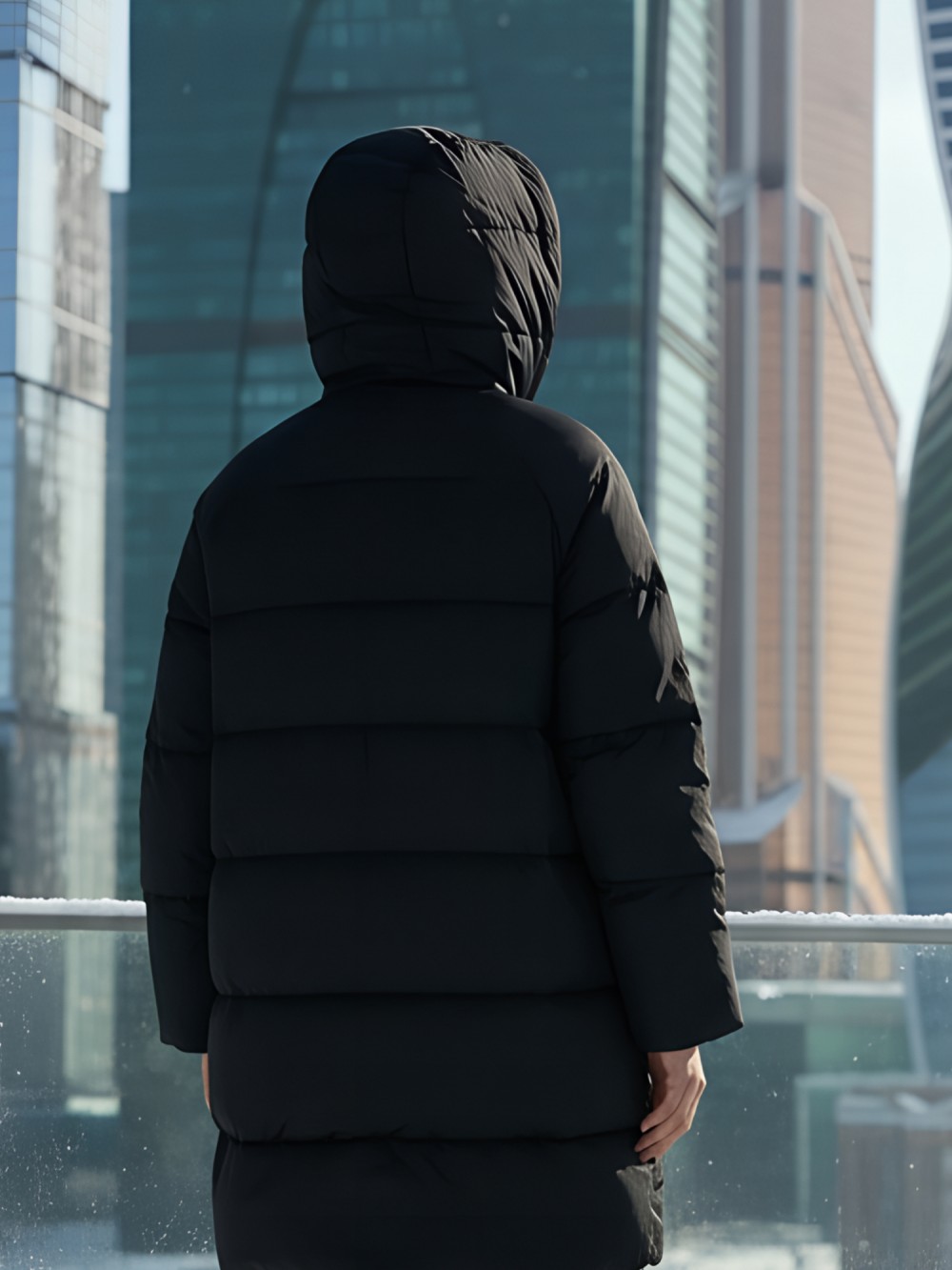 Надёжно защищает от холода, ветра и осадков. Идеален для зимней погоды, не требует головного убора.