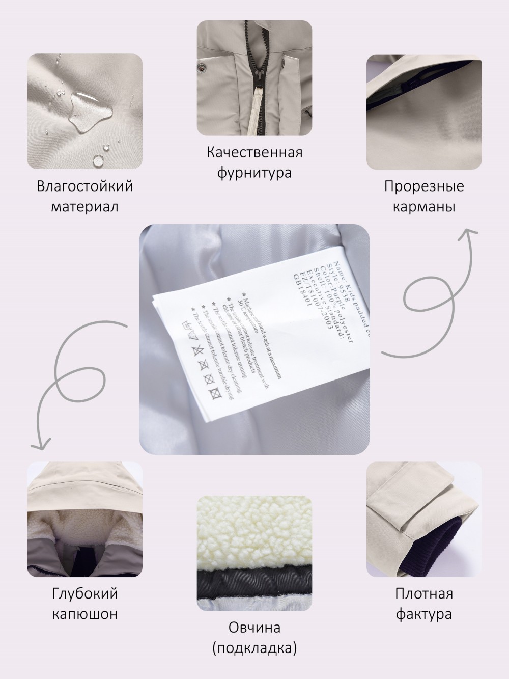 водоотталкивающий материал, гипоаллергенный материал, с разрезом, с начесом, светоотражающие детали, утягивающая модель