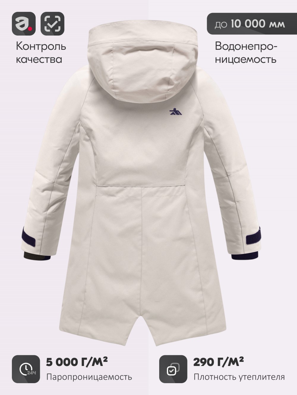 фиксаторы на рукавах (пат с кнопкой) и трикотажные манжеты удерживают тепло и не дают продувать.